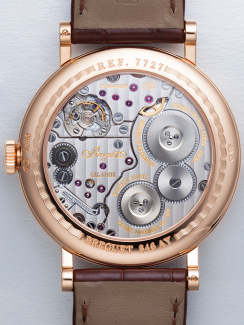 2013年的表展上 BREGUET 宝璣正式推出了 Ref. 7727 Classique Chronométrie 产品化的版本;强调「产品化」是因为再早一年他们已经发表过这款的原型表了。在实际深入瞭解这款表之前,笔者对 7727 的第一眼印象是「宝璣的又一只 10Hz 表款」,由于他们家在2010年就推出过10Hz(=72,000vph=20震动)的 Ref. 3880 Type XXII,因此再看到这款的时候很容易就假设它只是 3880 拔掉计时功能的简易版、斯文表。但实际上 7727 跟 3880 在研发上的传承关系可能并不多,甚至高震频一开始应该根本不是 7727 研发的目的,相反的,对宝璣在 7727 上实验的超前卫技术来说,高震频只是它的特性能够达成的效果之一。