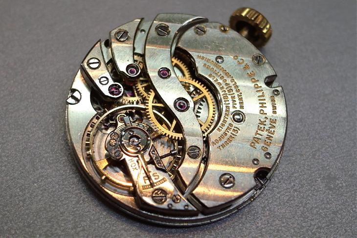 砝码微调这种调速装置,最早是百达翡丽在1949 年推出特殊的Gyromax砝码摆轮,这种设计甚至获得制表大师Philippe Dufour的大力讚扬,誉其为目前最精密的一种微调装置。PP 的砝码摆轮有4 或8 个如同C 字状的砝码(一般品牌为2 至8 个),固定于摆轮外环的凹槽上,透过工具可转动缺口方向,调整摆轮的惯性,进而改变摆轮的走时速度,或是调整方位差;但是在调整时间快慢时,需要同时转动两个砝码,而且调整角度也必须相同,才可以确保摆轮的重量平衡,不至使摆轮失衡而影响走时误差。