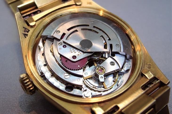 图片中是採用无卡度游丝摆轮的ROLEX 3055 机芯,以及其专用的微调工具Micro-Stella。