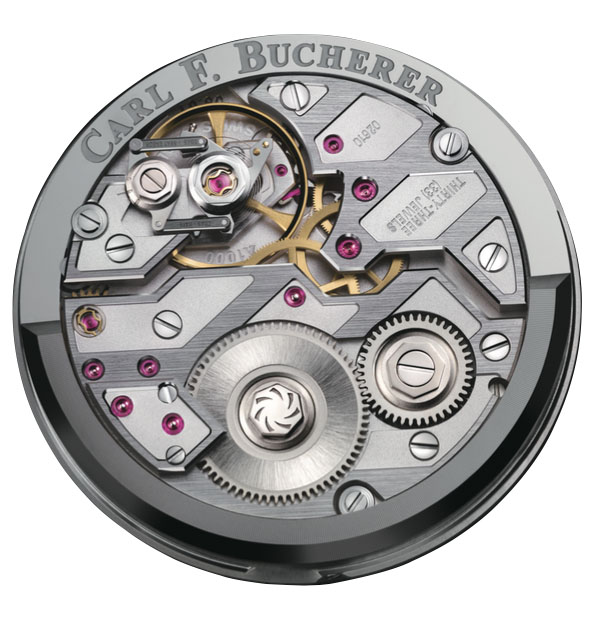 所谓的「二代自制机芯」: 规格标准、泛用性和扩充性强、成本上利于量 产,有别于2007、08年以前那些宣示意味浓厚的「一代自制机芯」。由于一开始打的就是实用的主意,所以这些机芯长得都比较不起眼,技术上也不避讳沿用一些既有的设计。相形之下CARL F. BUCHERER宝齐莱的CFB A1000算是很有 个性的一个例外。2008年的Basel上宝齐莱发表了CFB A1000的原型机芯,当时笔者颇惊艳于它的环状自动盘; 之后多做了点功课,才发现原来类似的设计在 百达翡丽的古董表和积家的概念表上都出现过。 2009年的Basel时笔者有机会和总裁Thomas Morf谈到这个问题,Morf表示之前的环状自动盘都没办法解决储油的问题,直到CFB A1000才真的做到了实际生产。