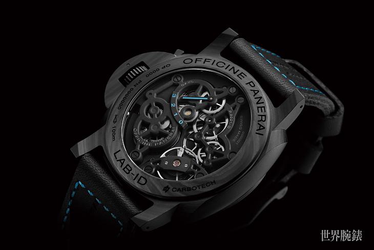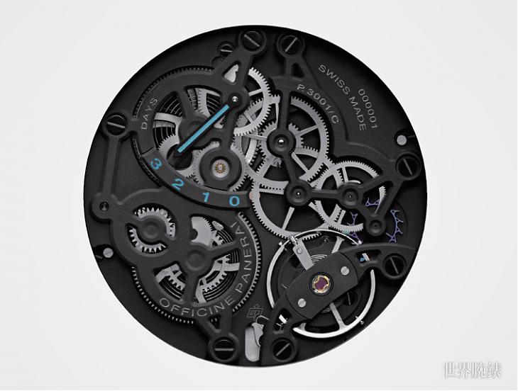 所谓的LAB-ID是Laboratorio di Idee的代称,这个单位位于沛纳海在纳沙泰尔的厂区,相当于品牌的研发部门。直接以本工坊命名的PAM00700由内到外运用了多种高科技,有些是崭新技术,有些则是不同领域的交叉转用;机芯的重点在于降低对润滑的需求,不过他们并没有为此另外打造一枚全新机芯,而是将既有的P. 3001加以强化,具体的型号则是P. 3001/C——有鉴于这次运用的技术几乎都以碳素材为基础,合理推测这个C字指的应该就是Carbon。