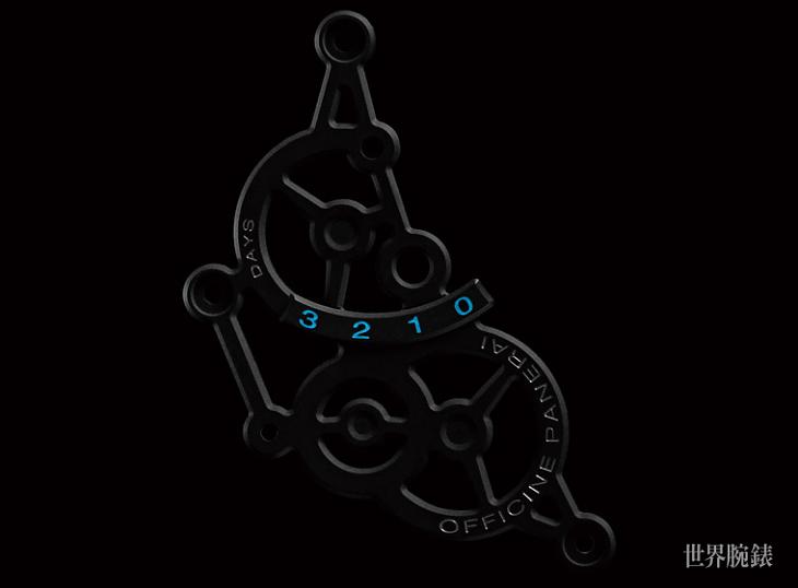 想降低机芯对润滑的需求有几种不同的途径,沛纳海着眼的基本上就是强化零件的硬度,让零件间即使有摩擦也不易产生耗损。针对一枚机芯需要强化的各部零件,沛纳海分别提出不同解决方案,其中夹板部分使用一种以鉭金属为基础的陶瓷,这种素材当中含有高比例的碳,特性是摩擦系数极低,甚至强过一般轴承使用的红宝石,因此夹板索性放弃了宝石轴承,原本表桥上应该要装宝石的位置变成了实心的板材,让夹板直接接触齿轮轴。