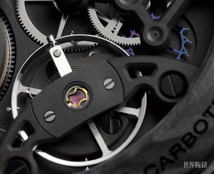 Carbotech材质/P. 3001/C手动上鍊机芯/时、分、小秒显示/动力储存显示/蓝宝石水晶镜面、透明底盖/防水100米/表径49mm/限量50只/参考价:NT$ 1,660,000