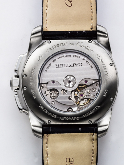 2013 年 1904-CH MC 的出道是搭載在 Calibre 系列上,其實 Calibre 系列錶冠護橋上的凹槽一開始就讓人聯想到計時按把,如今真的推出計時碼錶了可以說是得其所哉。不像 750 系,面盤的 6 點鐘不是小秒而是日期,不過 1904 MC 的小秒原本就在 6 點鐘,到時 候就算要裝回去應該也不為難。除此之外卡地亞 '13 年新出的計時萬年曆也是以 1904-CH MC 為底,看來這枚基礎計時機芯很快地 已經開始扮演好它的角色了。