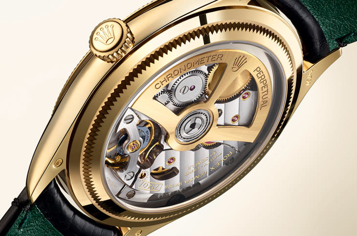 ▲一改勞力士傳統,1908系列擁有透明底蓋設計,大方秀出品牌精進後的機芯修飾工藝。