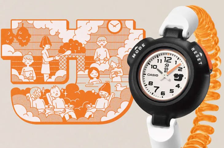 在日本許多人很享受在蒸氣房裡冥想、放空、排汗,體驗所謂的「整う」時刻,CASIO注意到這股風潮,決定從使用者的真實需求出發,開發出一款能在高溫環境中穩定運作的手錶——「サ時計」(Sa-Dokei)SAN-100H,它不是從品牌高層的指令中誕生,而是源自卡西歐內部一位熱愛三溫暖的員工所提出的構想,並透過公司內部創新孵化計畫「IBP(Idea Booster Program)」成功商品化,光故事起點就相當有趣。