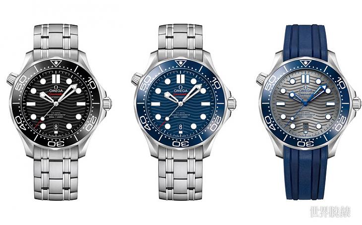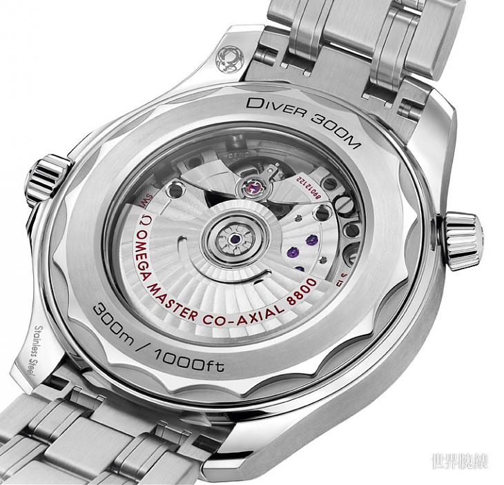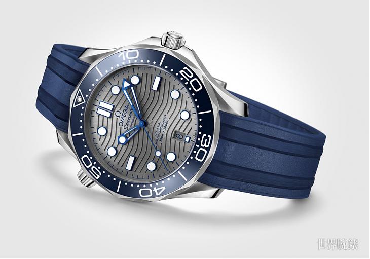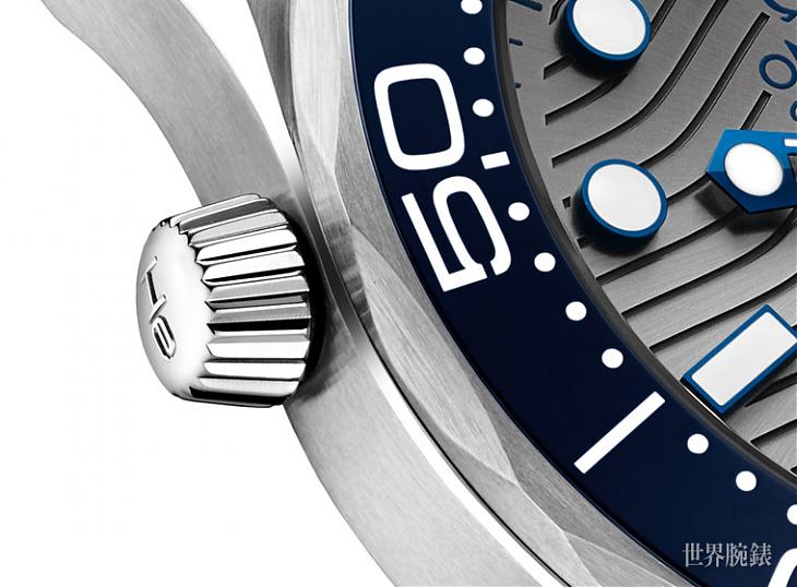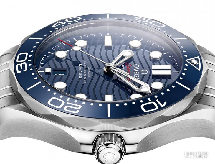 表背缀饰波浪纹饰边,晶莹的蓝宝石水晶镜面可透视经瑞士联邦邦计量科学研究所(Swiss Federal Institute of Metrology, METAS)认可的机芯。最后,每款全新腕表均可选配具标志性的传统金属链带或搭配嵌接式黑色或蓝色橡胶表带。金属链带採用新颖的人体工学设计,可与表壳完美嵌接,更设有欧米茄拥有专利的伸缩齿杆式摺叠扣和实用的潜水专用加长链带。