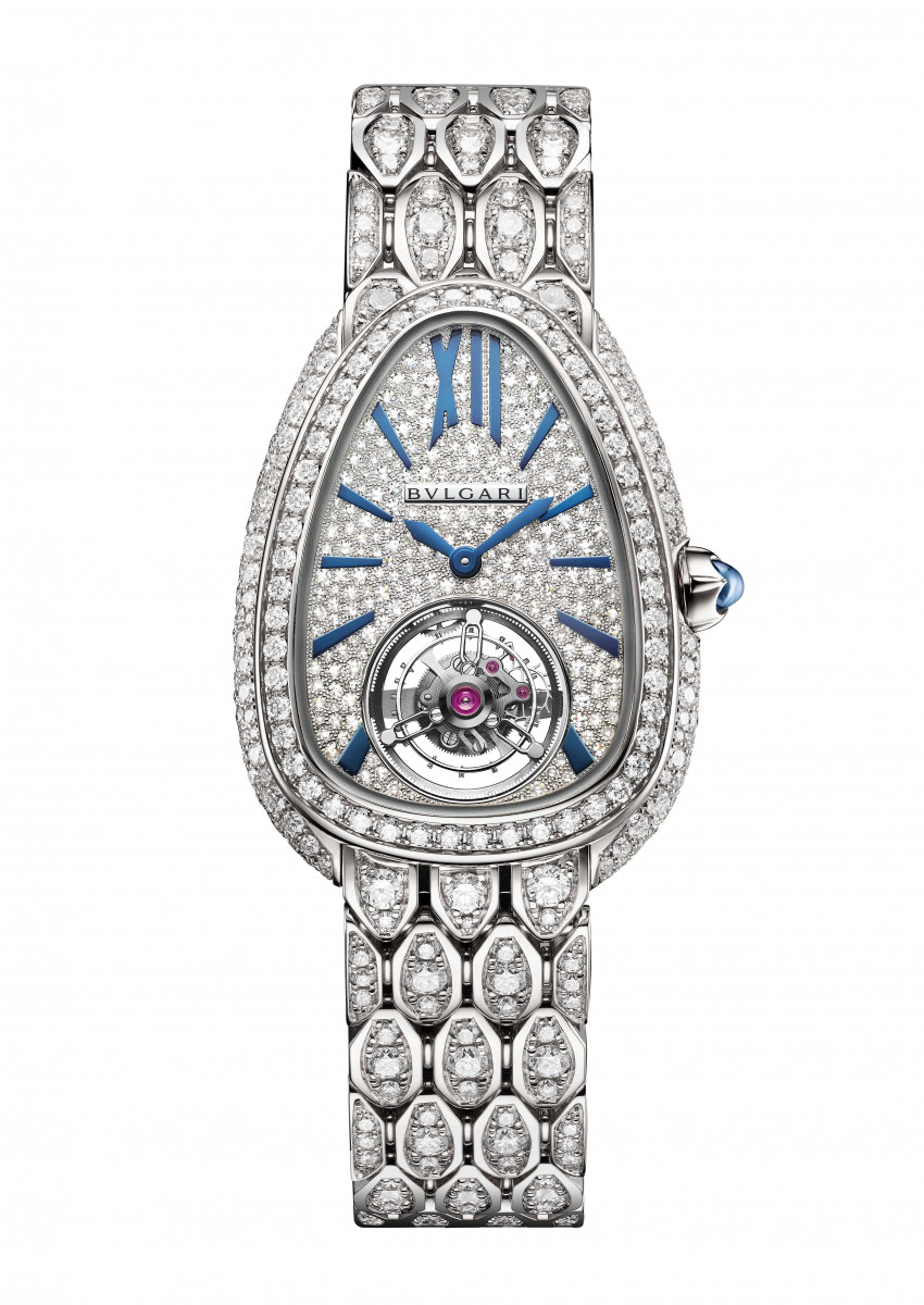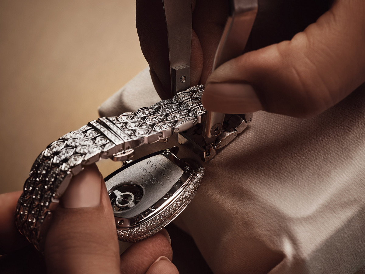 ▲新款Seduttori的机芯融合了瑞士专业的制表知识与珠宝制作的卓越技艺,是宝格丽独树一格的特色