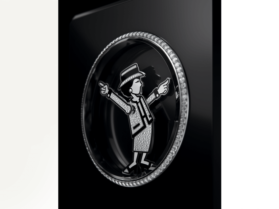 其中Coco座钟在品牌众多新品中尤为引人注目,此作品灵感源自结合对香奈儿女士三款物件的致敬:手表、座钟及长项链。香奈儿女士图腾再于表坛露面,打破制表疆界,展现大胆创意设计语汇。透过三款物件结合标志性品牌人物–香奈儿女士,竖立她对于自我的定义:风格魅力,不仅只是时计而已。香奈儿女士图腾彷彿为时间的守护者,座钟底座形体,令人联想起八角造型的No.5香水瓶盖与芳登广场。