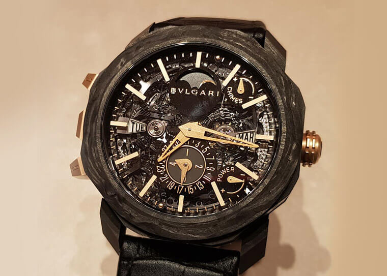 宝格丽日前在台湾举办了Cinemagia顶级珠宝暨腕表展,裡头除了展出许多珠宝饰品,当然少不了的还有品牌钟表作品(据说总共展出将近300件珠宝与钟表,价值加起来超过50亿台币!)其中宝格丽在2020年LVMH钟表中的新品如Divas’ Dream孔雀石超薄三问表、Serpenti Seduttori陀飞轮手表和Octo Finissimo玫瑰金超薄三问表都一一现身与国内的藏家见面,然而其中有一款2019年的作品同样吸引我们的目光,那就是Octo Roma大自鸣万年历复杂功能表,这款表集结了大、小自鸣、三问、陀飞轮、万年历与月相等各式各样的复杂功能,价格超过2千6百万,光是这样的复杂度和价格就够让人咋舌了。