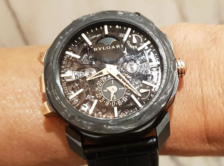 资深钟表收藏家曾士昕Roger这次也在Cinemagia顶级珠宝暨腕表展上亲眼见到了这款宝格丽的大自鸣手表,以他丰富的手表阅历经验,能见到这款表竟连他都觉得非常难得,甚至直言这款大自鸣堪称是目前线上量产表款中,除了百达翡丽6300之外最复杂的手表逸品了。