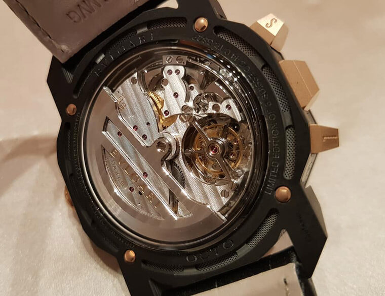 ▲这枚BVL 980自动机芯零件数超过1000枚,拥有大自鸣、万年历和陀飞轮等多重复杂功能,精细结构让人叹为观止。