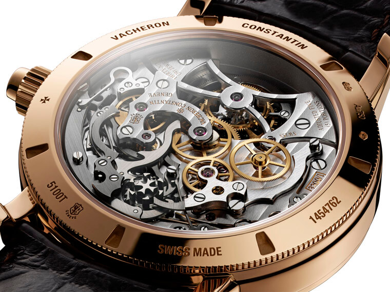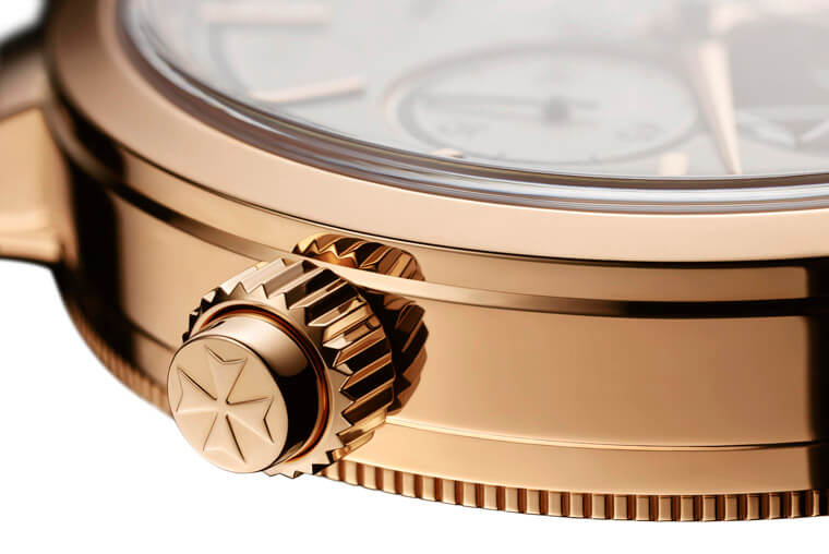 表坛上不乏陀飞轮加计时功能的组合,但Traditionnelle Tourbillon Chronograph之所以引人注意的原因在于它独到的演绎方式。这款表把陀飞轮设在12点方向,这对品牌而言并不常见(通常VC会把陀飞轮设置在6点方向),而3点方向则有计时功能的分钟小表盘,另外在6点方向还有个刻度从1到0的小表盘,乍看还以为它是有关计时的显示,但其实江诗丹顿是用这枚小表盘来指示手表的动力储存(实际动储为65小时左右)。