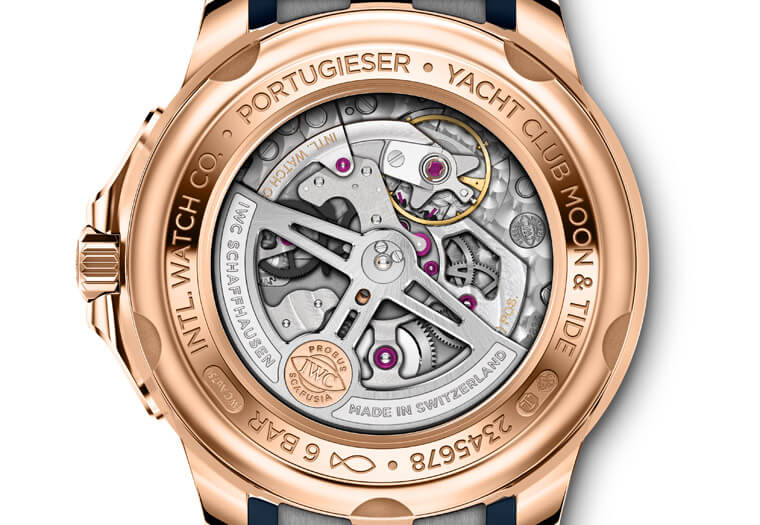 葡萄牙系列航海精英在2020年推出的月相及潮汐手表顾名思义蕴含了IWC新研发的潮汐指示功能,这款表採用18K红金制作,搭配与航海息息相关的蓝色面盘展现出高贵雅致的格调。手表面盘在外围设有秒数刻度,其内侧还有分钟刻度,搭配阿拉伯数字K金时标将时间的基本单位详细捕捉到为,而除了3点方向的日期窗,表款在6点与12点方向还分别设有满潮与乾潮指示以及能同步呈现大、小潮资讯的霜月相显示。