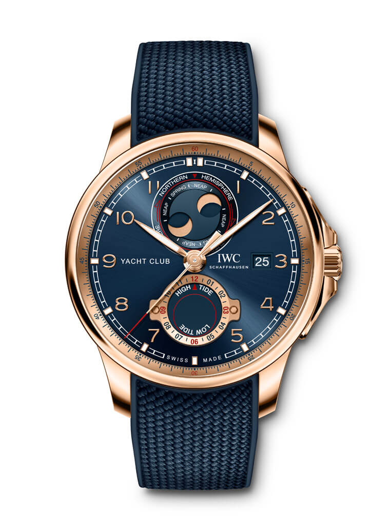 ▲IWC 2020年推出新款葡萄牙系列航海精英手表,其具有品牌新研发的潮汐显示功能,加上南北半球月相能同步呈现满潮-乾潮与大潮-小潮变化。