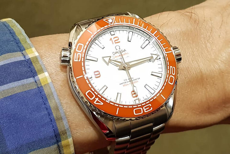 ▲2020年正式上市的欧米茄橘海马有少见的橘色陆琷表圈,加上大师天文台认证高抗磁机芯,整仓的细节对得起价格,是可以和劳力士媲美的优质滜水表。