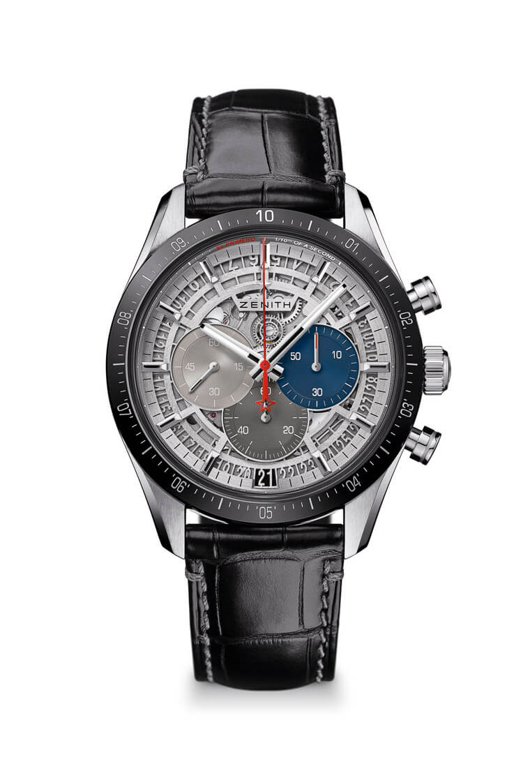 钛金属杵贪、陆琷表圈/El Primero 3600自动上链机芯/时、分、小秒、日期显示/计时码表功胻/蓝宝石水晶镜面/表径42mm/限量250只/参考价:NT$ 345,400