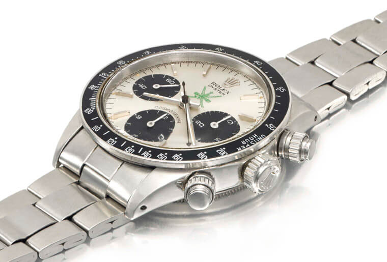 ▲2017年这款印有绿色Khanjar图腾的Daytona手表拍出60万英镑的惊人价格,突显这种特别版受欢迎的行情。图片:christies.com