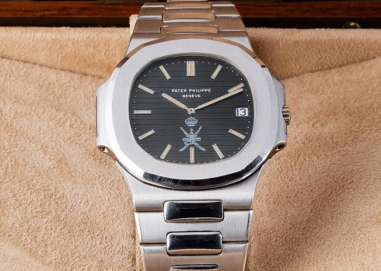 ▲印有Khanjar图腾的百达翡丽Nautilus目前在二手市场上价格很好。图片:phillips.com