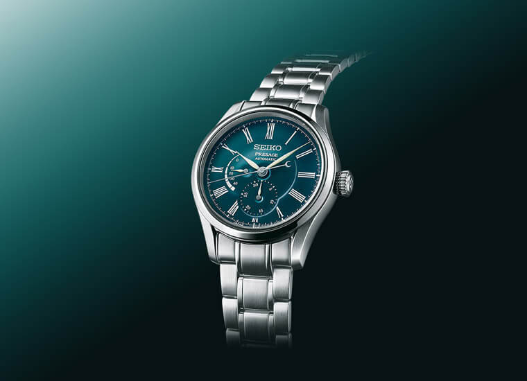 ▲SEIKO推出全新蓝绿珐琅面盘手表,特别的色泽让人看了眼睛为之一亮。
