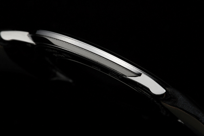 表壳没有中壳,表圈一路从正面包到背面,侧面只有短短一段平面,整个表侧像是刀锋一样,厚度只有4.05mm,是目前世界最薄的手表。