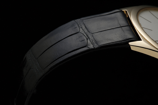 皮带的正面看不到缝线,厚度也相当薄,当年真正的Dressing Watch表带要做到这样才显正式,当然现在是没有那麼严格了,不过这款这一部份也忠实重现。