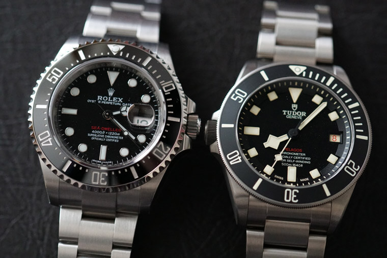 一般来说钛金属的密度比不锈钢要低(前者的密度大致为4.5g/cm3、后者密度则是8g/cm3),换句话说钛金属戴起来也就比不锈钢轻盈,这种差别反映在表壳相对厚实的潜水表上会更明显,例如帝舵的Pelagos和劳力士的海使,它们重量分别为157克与212克,差别多达50克以上,戴着手上可以感受到钛金属轻量化的优点。