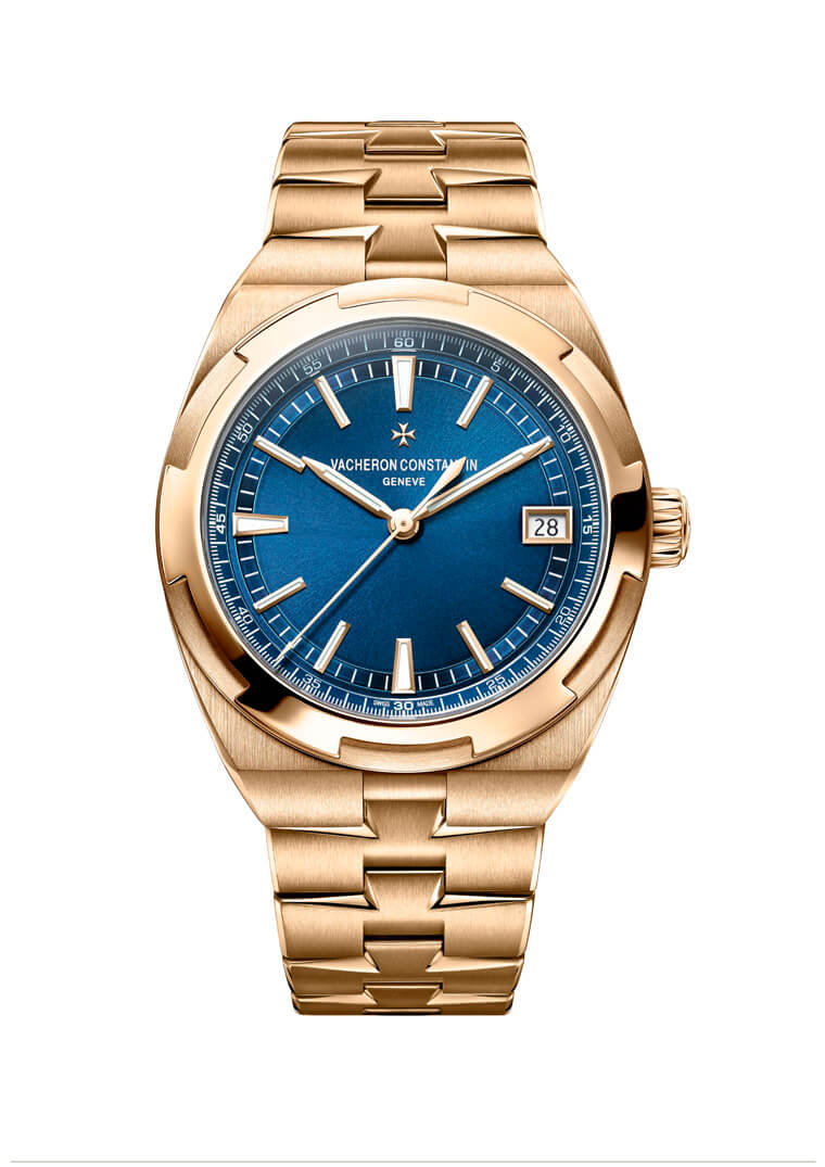 新款Overseas大三针是次系列同功能中首次採用玫瑰金表壳、链带,并搭配蓝色面盘的作品。手表外观拥有源于马耳他十字的六边形表圈设计以及凹槽设计的柱状表冠等特徵,在这些细节一一堆叠之下,成就表可运动也可优雅的美丽外观。