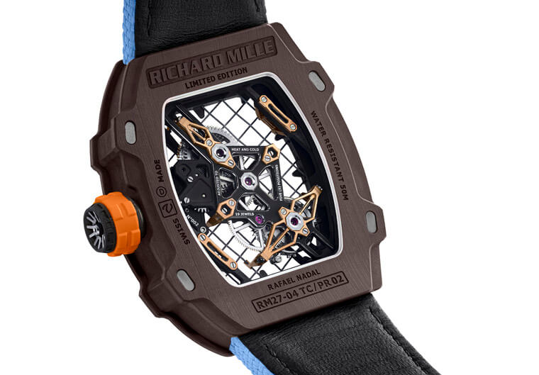 ▲为了庆祝RICHARD MLLLE与西班牙蛮牛Rafael Nadal合作迈入十周年,双方共同打造出全新的联名款式RM 27-04 Manual Winding Tourbillon Rafael Nadal。