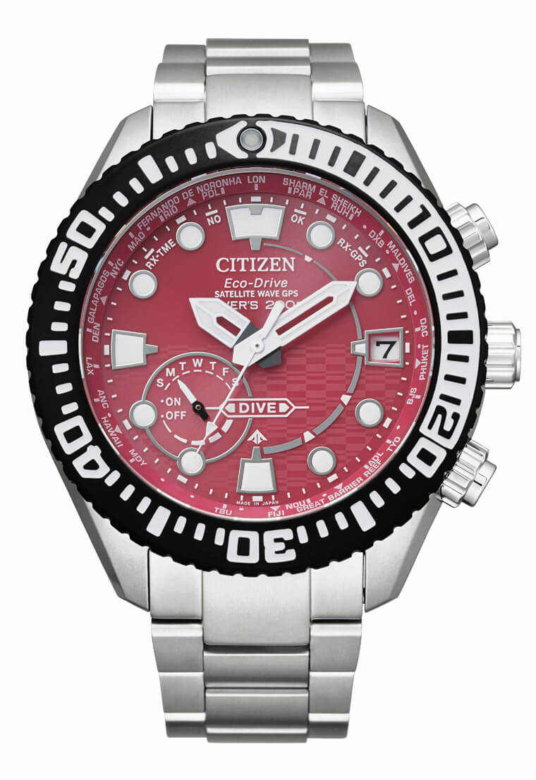 另外潜水表CC5005-68Z的表圈以黑白双色呈现,面盘的红色细看右下角地带会有交错的格纹赋予其更丰富的视觉层次,至于手表的功能还是相当齐全,例如万年历、世界时区等等,其还有卫星对时确保手表的精准度维持在高档,整款表以跳脱传统潜水表的红色风格让人耳目一新。