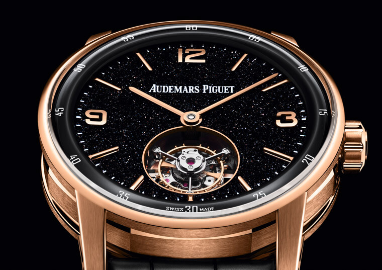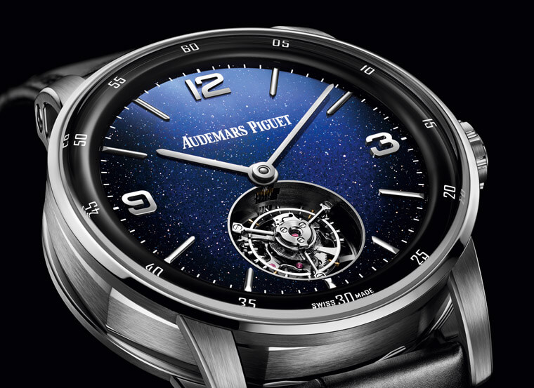 既然功能和表壳材质都跟2019年的款式相同,那麼2020年的CODE 11.59自动飞行陀飞轮到底有什麼差别呢?主要便是面盘视觉效果的不同。爱彼这次虽然还是用珐郎工艺制作面盘,但是品牌变化出新样式,他们在制作大明火珐琅的过程中乃是以砂金石碎片为基底,简单来说是珐琅工艺师先将玻璃砂和水调匀后,再将其在粉碎的砂金石上涂上薄薄一层,接着放入烤箱中加热到摄氏800度以上,如此重复上色与烧制的循环,直至珐琅呈现出达到AP要求的透明度、深度和光泽。