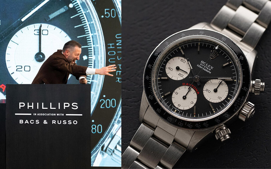 12月12日对钟表届来说有件大事,那就是富艺斯(Phillips)拍卖行与Bacs & Russo共同于纽约举行的Racing Pulse New York Watch Auction拍卖会正式登场。这场拍卖会共计有137款手表竞拍,其中更是有许多手表来头不小,例如我们先前曾介绍过Paul Newman本人所拥有并佩戴的Paul Newman “Big Red” Daytona Ref. 6263、好莱坞巨星席维斯史特龙(Sylvester Stallone)收藏的数款沛纳海和RICHARD MILLE名表、以及非政府组织一滴水基金会(One Drop)创办人Guy Laliberté所捐赠的几款AP名表等,都被看好可以拍出漂亮的价格;尤其是Daytona Ref. 6263更被期待有望超越2017年Paul Newman" Daytona Ref. 6239曾创下1775万2000元美金(迄今最贵劳力士手表)的拍卖纪录。