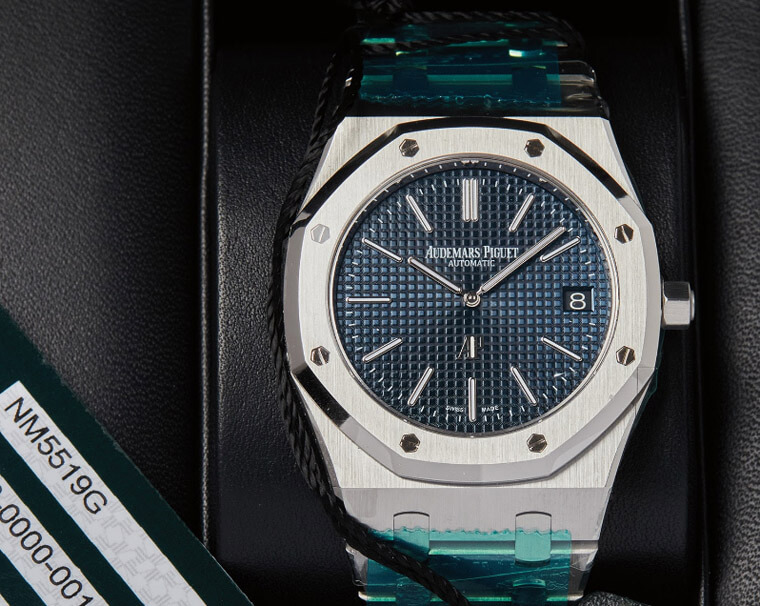 ▲表背刻有摩纳哥亲王阿尔贝二世亲笔签名的皇家橡树”Jumbo”超薄表拍出高过预估价四倍以上的价格。Source:Phillips Watches