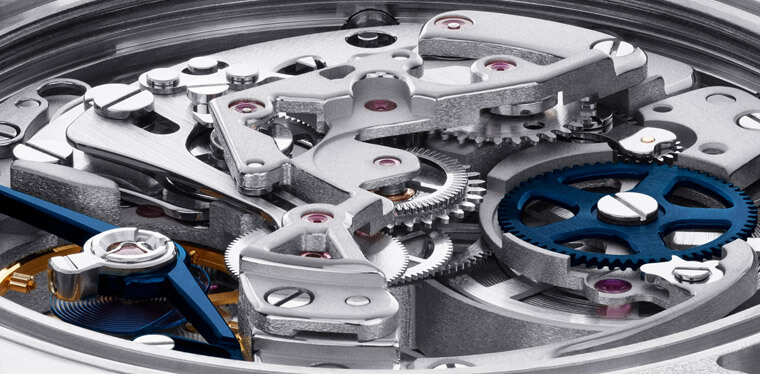 这次Artisans de Genève对于手表搭载的4130机芯进行了比较大幅度的修改,除了整个把机芯零件拆卸下来重新切割、喷砂和倒角,特别的是,品牌连自动上链系统都直接捨弃并改装Artisans de Genève自行研发的发条盒,虽然动力储存一样保持72小时,但这枚机芯却已转变成手上链设计,另外摆轮桥板和大捲车则一併改为蓝钢处理,整枚机芯简直像是换了个样一般。