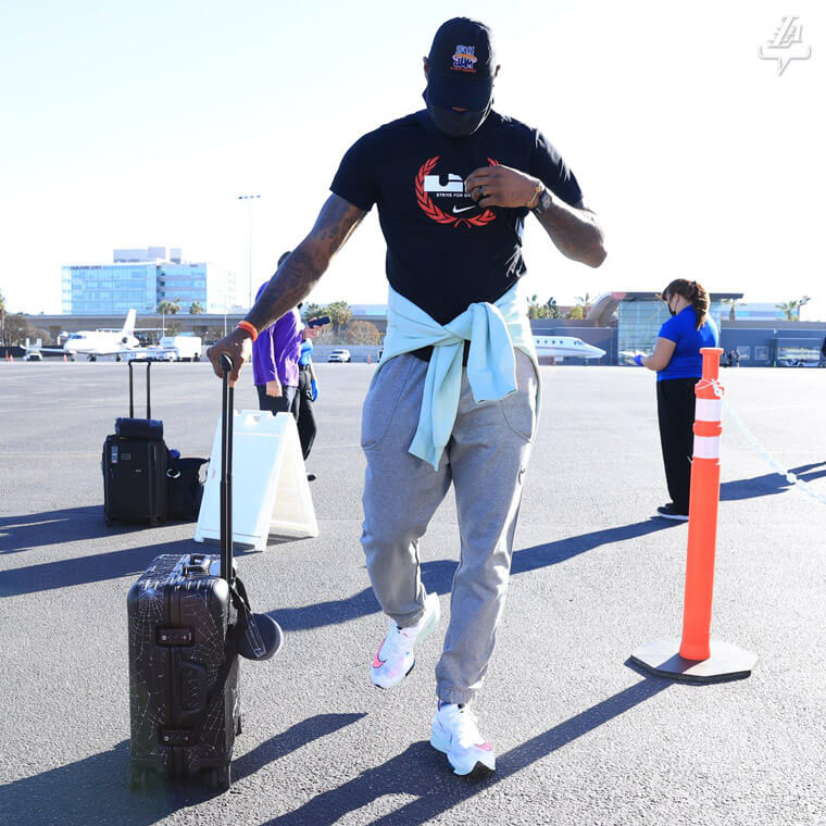 ▲詹皇姆斯在美国时间12月16日出战太阳队的热身赛赛前,佩戴一款AP新表引起瞩目。Source:Twitter @Lakers
