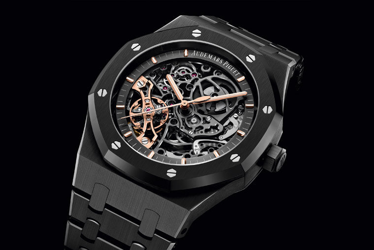 皇家橡树双摆轮镂空手表是2016年才问世的作品,这几年来AP除了精钢、玫瑰金款式外,陆续增加白金霜金、白金表圈镶钻等款式,甚至还有37mm的小表径版本,从中反映出手表深受市场喜爱的人气。垂直串连的双摆轮属于爱彼独家设计,镂空面盘加上有助于提升手表精准度(以及提升视觉惊艳感)的双摆轮,双双替经典的皇家橡树系列挹注更迷人的收藏魅力,这款表过去四年来的身价水涨船高,想要入手肯定都要超定价,不过先前爱彼都只推出金属表壳材质,直到2020年底品牌才首度开发出採用陶瓷这种相对科技材质的改款作品,一推出就备受市场关注。