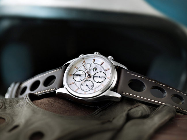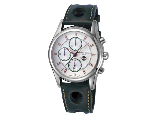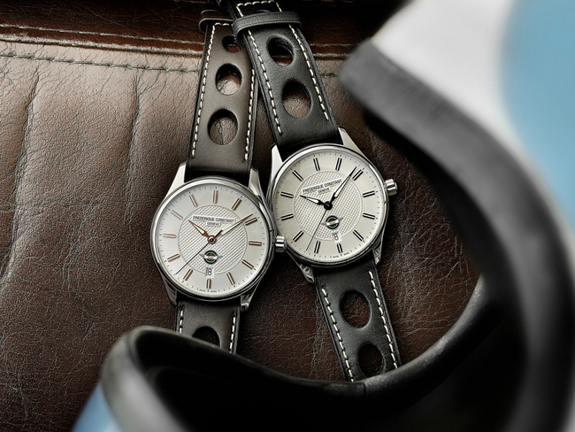 每个新款式的外形都充满活力,从手表独特的 "O-rings" 皮表带,到表盘上的Healey标誌,令人联想起赛车手的造型。计时表款 FC-392HVG6B6,精钢制造,直径43mm,坚固的蓝宝石水晶玻璃镜面保护着亮眼的银色表盘,以及精致的guilloche纹饰。可靠耐用,手表防水达100米,并提供46小时动力储存。计时功能分别在独立的小面盘中显示,并以Healey专用的绿色呈现;日期视窗则置于6时位置。时、分针,及人手装配的刻度均以玫瑰金打造。最后黑色皮带配以人手制作的白色缝线,成就一枚出色的作品。另外两枚自动手表款式—FC-303HS5B6及FC-303HV5B6,搭载FC-303机芯,提供高度准确性。两款均备40mm直径的精钢表壳,38小时动力储存,防水50米。功能包括时、分、秒、于6时位置的日期显示;Healey的标誌置于日期视窗上方,精美的银色表盘及上面雅致的guilloche纹饰,展现美丽的光泽。型号HS5B6配备人手装配的黑色刻度及夜光指针;黑色皮带搭白色缝线,营造型格且和谐的气息。而HV5B6则以华丽的玫瑰包金刻度亮相,并配有巧克力深棕色皮带,搭白色缝线。每一枚新款式均以特别设计的礼盒盛载,并送上Healey NOJ393模型车。康斯登把现代与经典结合,将代表着1950年代Healey的NOJ393,在今天以现代制表工艺作重新詮释,向一代经典致敬。