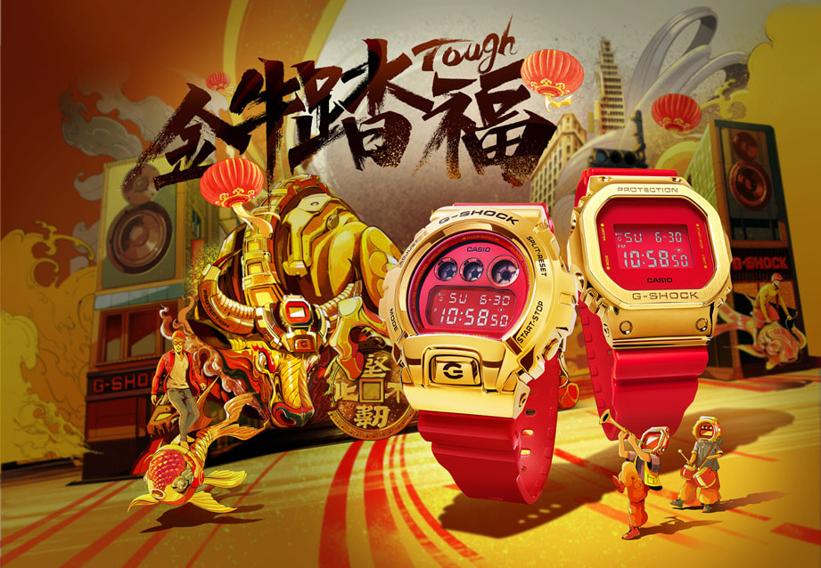 这阵子我们陆续看到不少瑞士手表品牌推出结合珍稀装饰工艺的牛年生肖表,藉此来庆祝2021年即将到来的中国农历牛年,然而大中华区毕竟市场广大,除了高端机械表之外,价格相对亲切不少的电子表产品也一样希望能分一杯羹搭上这波生肖表热潮、发发新年财,像是最近G-SHOCK便一口气连发了两款农历新年限量版,透过抢眼的配色以及底盖刻印的图案,传递牛年脚步愈来愈近的讯息以并延续其吉祥喜悦的精神。