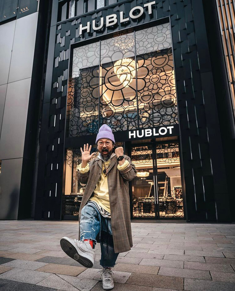 村上隆近日在个人的IG上连Po了几篇文都有关这款Classic Fusion微笑之花联名表,他先是在宇舶位于东京银座中央大道上的旗舰店前开心和手表合影(从照片中可以看到宇舶为了宣传这款新表上市,也特别在店面玻璃窗上装饰了显眼的微笑之花图案)。