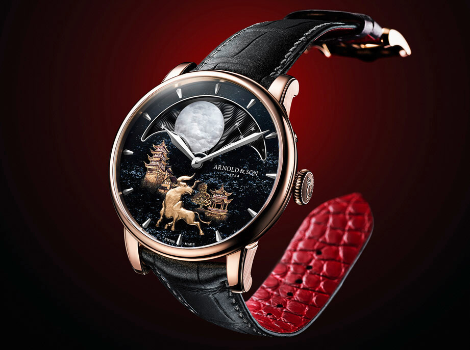 2021年适逢农历金牛年,ARNOLD & SON亚诺表量身打造一款超特别的生肖表——恆久月相系列金雕微绘牛年手表(Perpetual Moon Year of the Ox),全球限量8只。