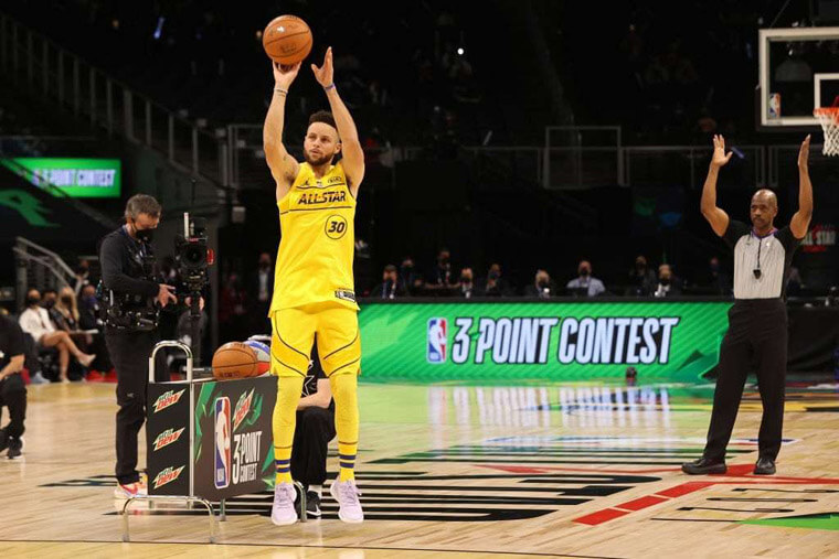 ▲2021第70届NBA全明星赛日活动,三分球大赛由金州勇士队巨星萌神咖哩——柯瑞(Stephen Curry)领衔,紧张刺激程度让人看得如痴如醉。Source:7up Sports