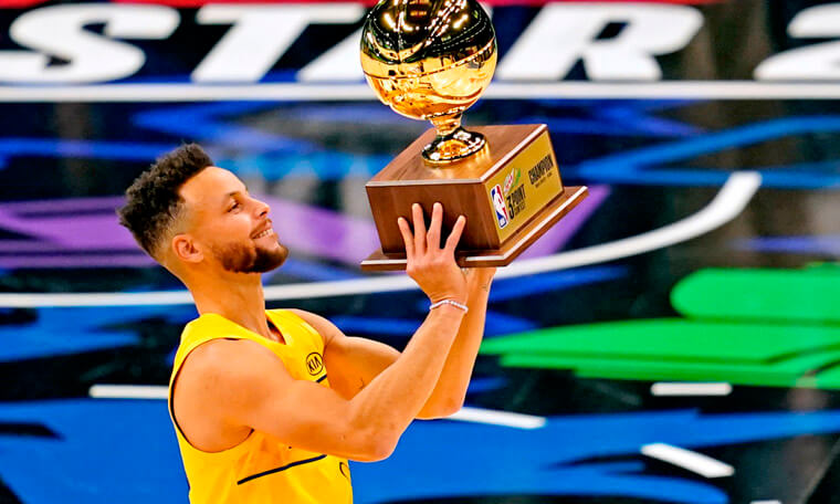 综观全明赛这个主菜之外,第70届NBA全明星赛整体活动中最具可看性的还是三分球大赛,今年共由金州勇士队的萌神咖哩——柯瑞(Stephen Curry)领衔,加上塞尔蒂克队的泰托姆(Jayson Tatum)、布朗(Jaylen Brown)、公牛队的拉文(Zach LaVine)、爵士队的米契尔(Donovan Mitchell)以及最后一刻递补Devin Booker的爵士队老将康利(Mike Conley)。