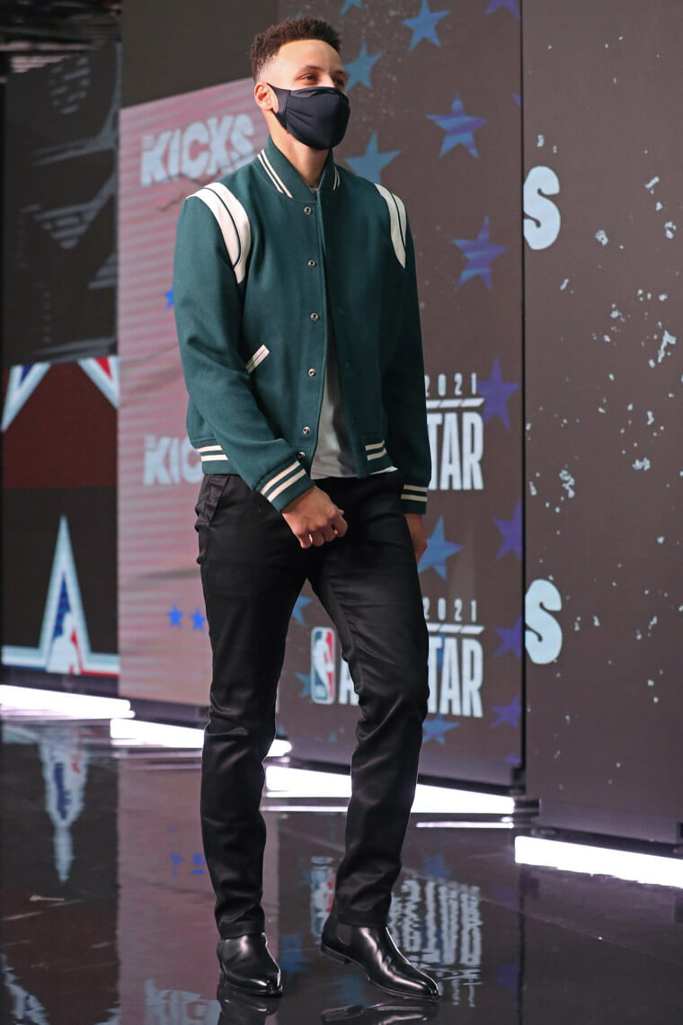 Stephen Curry在全明赛赛前进场时打扮的非常休閒,虽然他是穿着皮鞋进场,但是身上的运动外套搭配T-Shirt却又显得一派轻松。乍看Curry整身行头相对低调,但是手上的金表光芒却是藏不住,原来他当天佩戴了NBA球员们的天菜手表——劳力士Day-Date,Curry选择的款式是黄金的228238,搭配三角坑纹表圈、香檳色面盘、罗马数字时标以及元首型(President)链带,看起来不花俏但却超级经典,而且手表本身定价高达NT$ 1,212,500,突显出Curry的巨星风范。