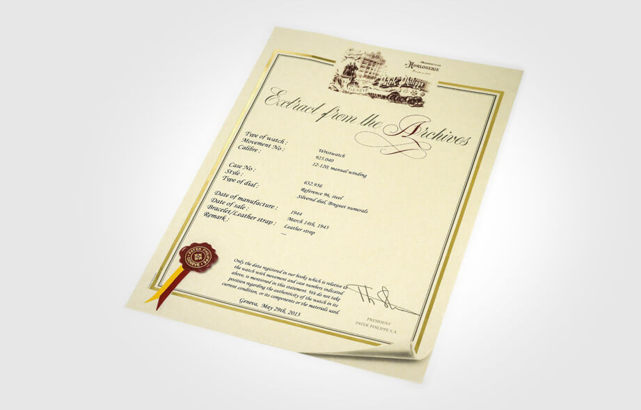▲百达翡丽原厂提供的服务中,有一项名为「资料库精萃」证书,原本表主只要持有表龄5年以上的PP时计并付出150瑞郎的代办费,就可以拿到一份时计相关资料文件。Source:watch collector corporation