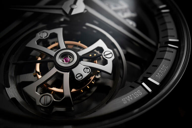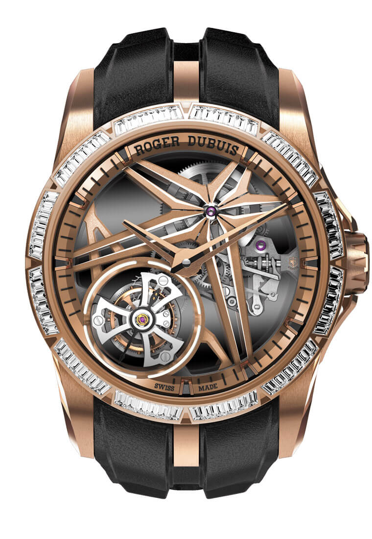 ▲Excalibur飞行陀飞轮另推出镶钻版本,其採用两项独特技术使得手表在夜晚或黑暗空间中可以展现出不同的样貌。