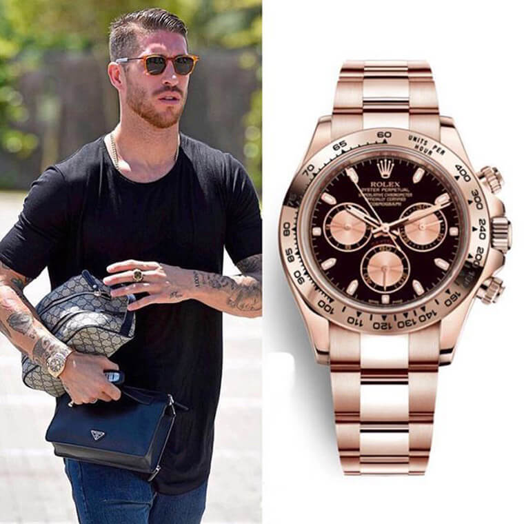 ▲劳力士在各国家队的能见度还是最高,图为西班牙中后卫Sergio Ramos佩戴劳力士Daytona。Source:Pinterest
