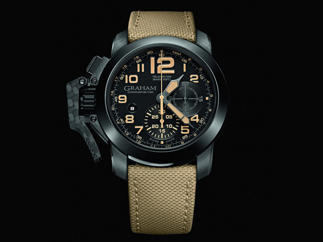 全新Chronofighter Oversize计时码表进行全面重新设计后,拥有了更多特殊性能,帮助现代探险家克服现实世界中的严苛环境。位于表壳左侧犹如GRAHAM註册商标的计时啟动/停止按把,经由特殊制程的碳纤维所打造,独一无二的设计与材质赋予表款更高的刚性结构与强化的耐用性能。黑色陶瓷表圈则提升了手表的抗刮强度,同时拥有让人眼睛为之一亮的鲜明个性。