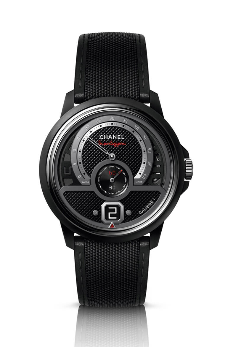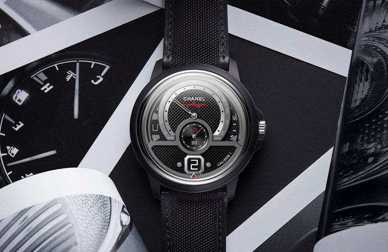 至于面盘上虽然还是保有Monsieur的招牌格局,包括上半部的240度逆跳分钟、中间的小秒盘以及靠近6点方向的跳时视窗等等,但是香奈儿为了呼应”Superleggera”这样的超跑元素而挹注更多新元素到手表的面盘细节中。