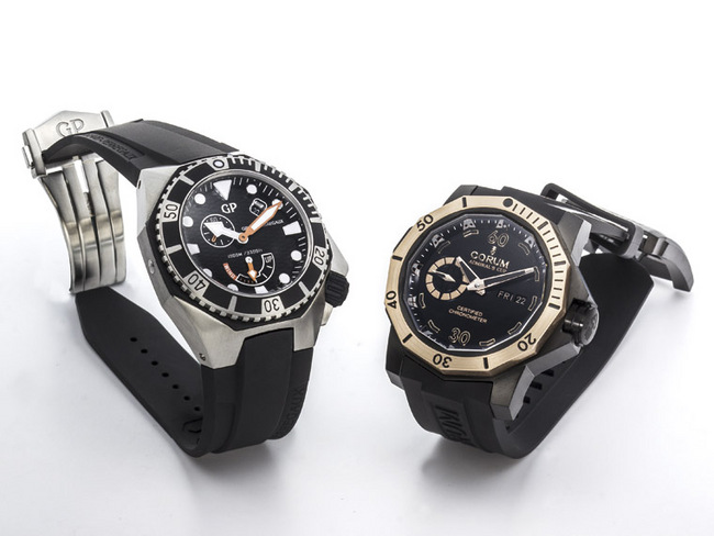 ▲ 左为GIRARD- PERREGAUX Sea Hawk 潜水表,右为CORUM Admiral's Cup Seafender 48 Deep Dive。