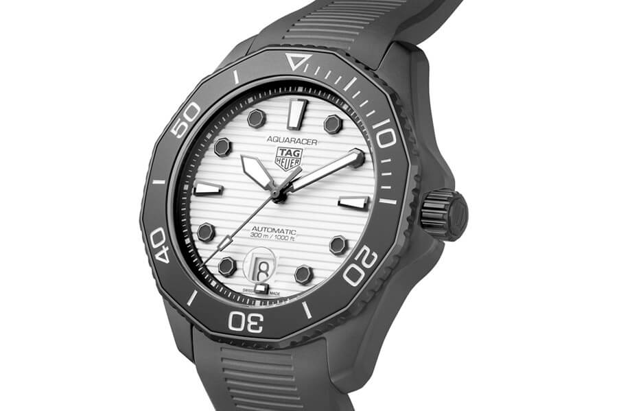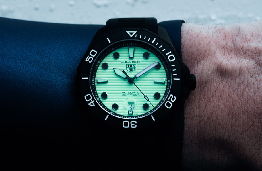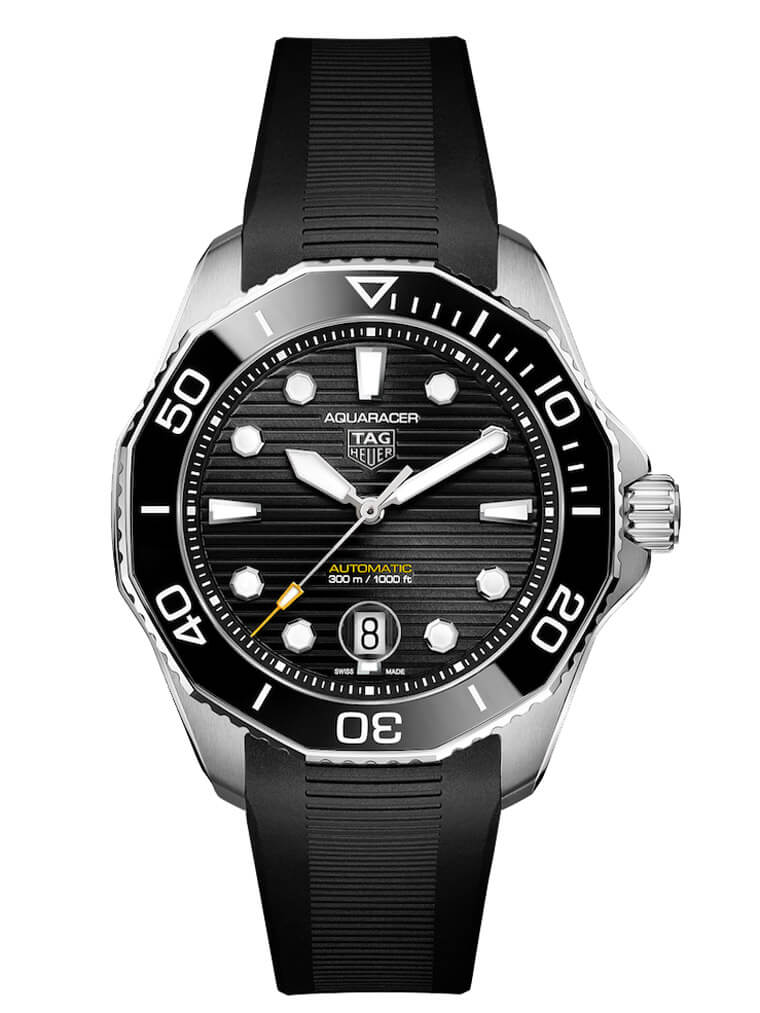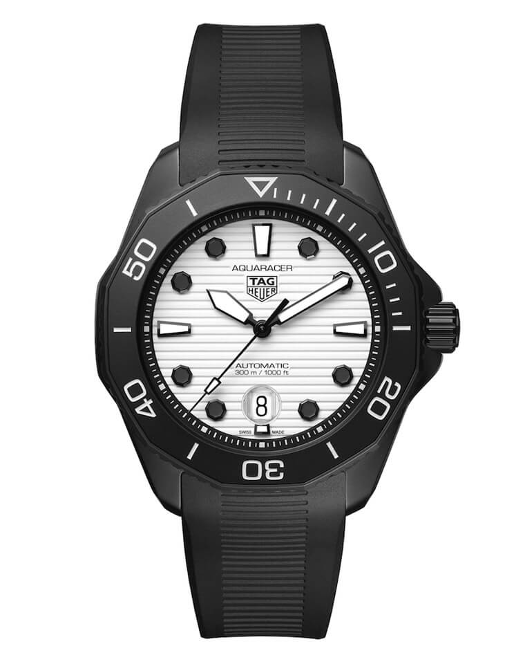 TAG HEUER泰格豪雅2021年推出了全新改款的Aquaracer潜水表——Aquaracer Professional 300,继品牌先前一口气推出8款以不同表径、材质和面盘顏色示人的系列成员后,最近泰格豪雅又新增了三款43mm的款式,除了黑色和蓝面新增橡胶表带款式外,另款Aquaracer Night Diver夜潜者手表堪称是这次新出三款中的主要重点。
